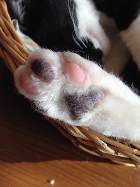 写真は事務局アイドル七味の肉球とお客様に頂いたおもちゃに興奮する七味でございます。
