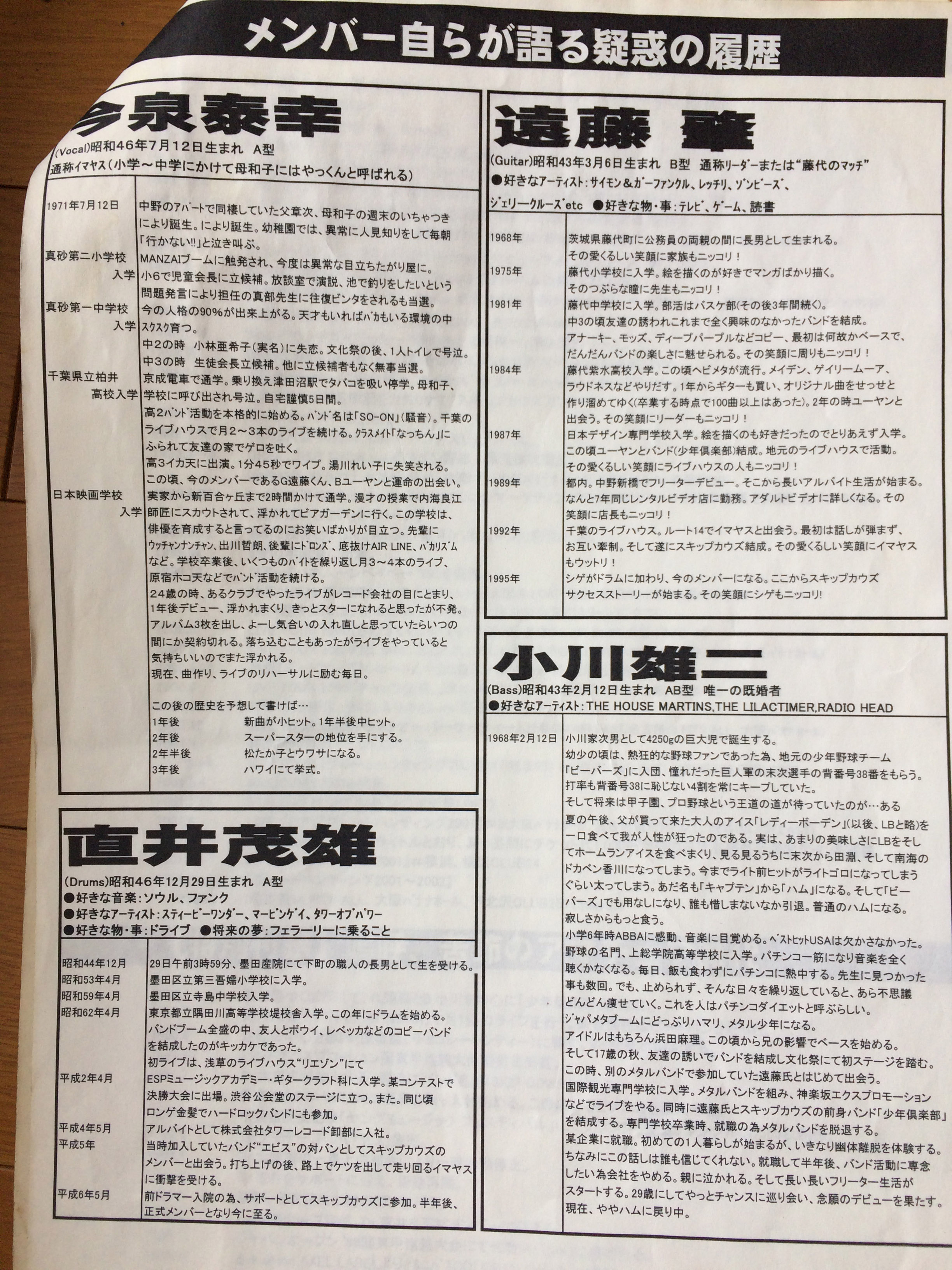 スキップカウズの各メンバーの意外に細かいプロフィールですね(笑)。