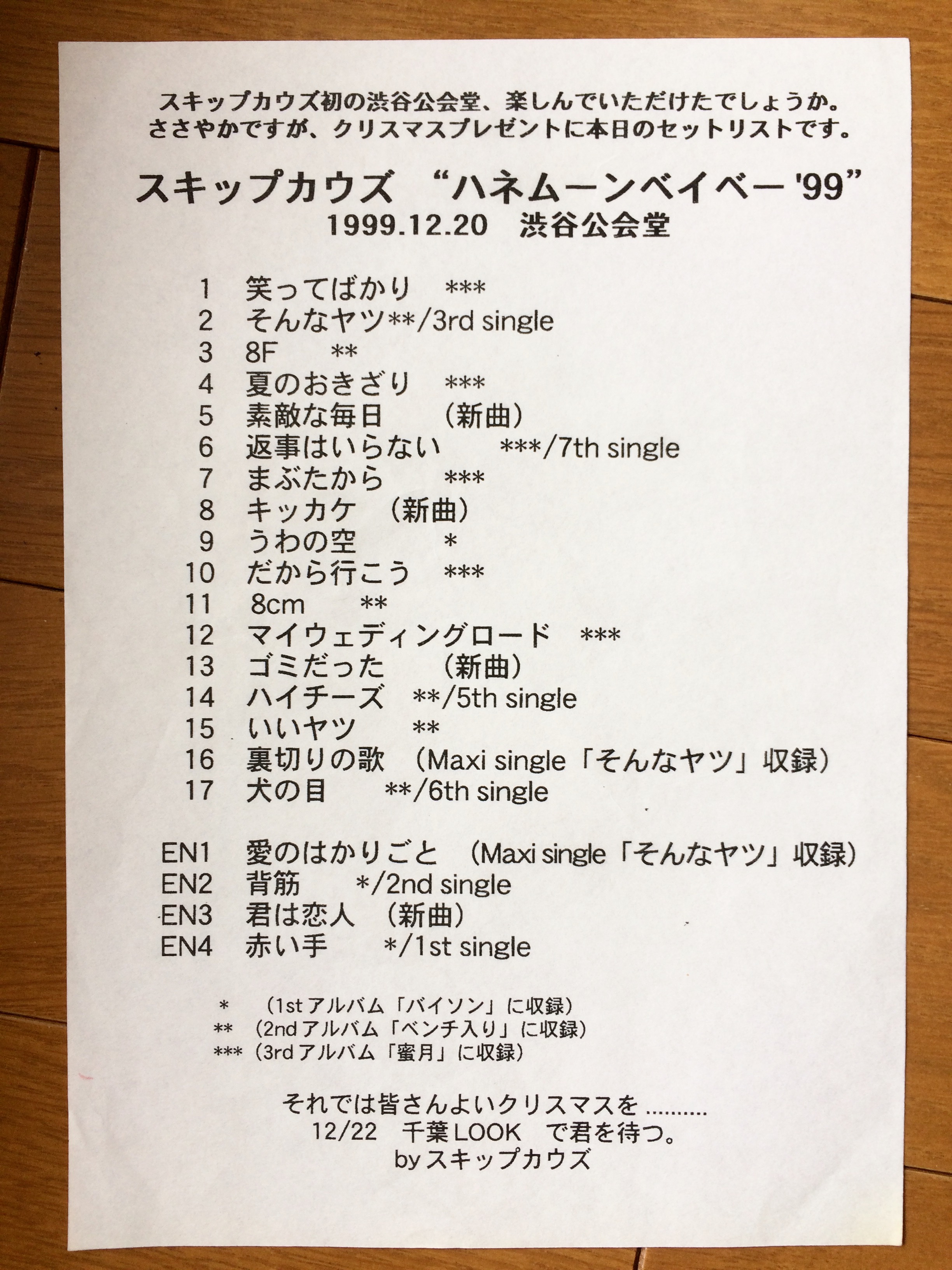 まずは、思い出深い渋谷公会堂ワンマンの時のセットリスト(笑)。