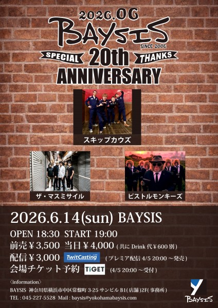 配信チケット(4/5,20時~):https://premier.twitcasting.tv/baysisyokohama/shopcart/426716#